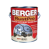 Berger RustPro is a premium quality, light industrial grade anti-rust enamel made especially for a tropical environment. Berger RustPro is a high-performance coating on both interior and exterior metal and can also be used on exterior wood. Dries to a rust resistant, scrubbable, stain resistant film. Special formula modifications result in a tile-like coating which can take years of use and abuse without chipping or flaking.