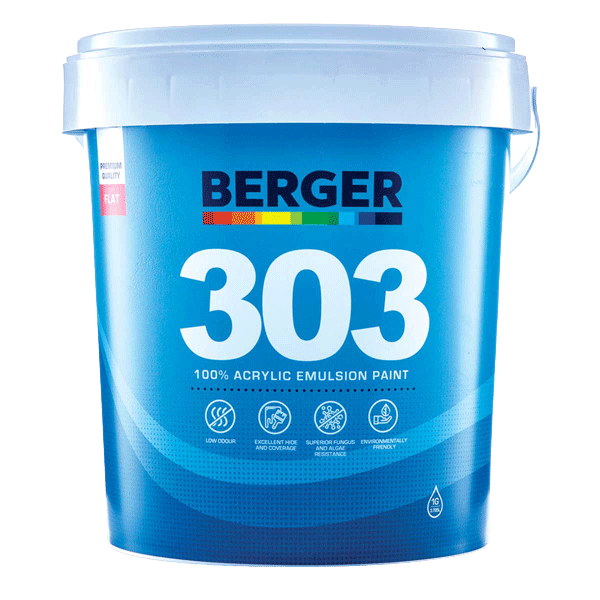 A premium quality wall paint with a perfectly flat, smooth finish. Specially formulated to give years of beauty and protection to interior and exterior walls and primed wood. Berger 303 Flat Emulsion is easy to apply by brush, roller or spray and its special tropical formulation is made to resist fungus and fierce found across the Caribbean. Berger 303 Flat Emulsion will hide minor surface flaws and undulations and is available in hundreds of colours.