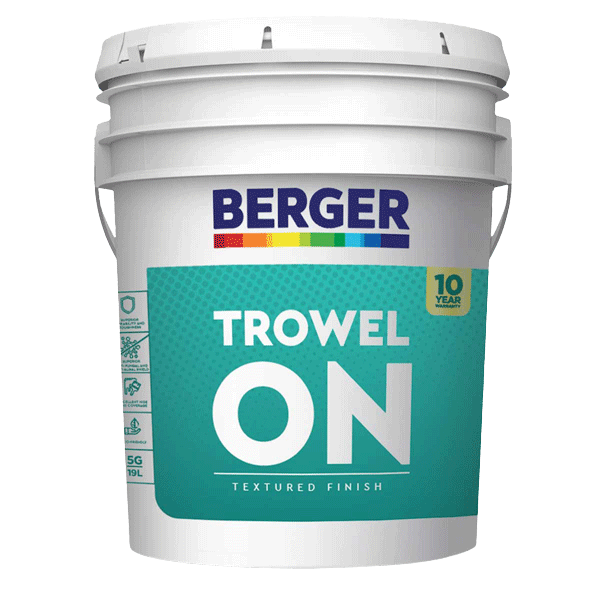 Trowel on is a heavy-bodied textured finish, available in a range of textures to suit every surface: ultra-fine, fine, coarse and ultra-coarse. A one-coat application which protects and obliterates concrete and rendered walls. Ideally suited to mask uneven rendered surfaces, cover imperfections and hide irregularities. Can be used as a one- coat finish to new work, previously coated surfaces and flush pointed block work.